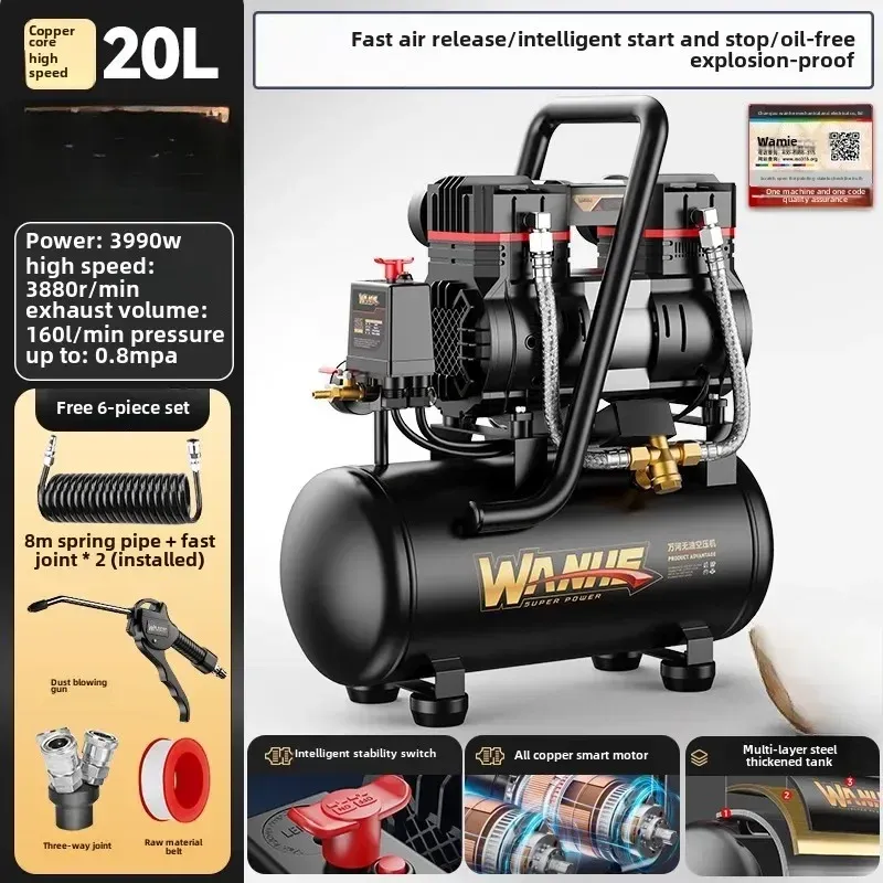 220V Portable Industrial Grade Woodworking Silent High Pressure Air Compressor Pump Air Compressors