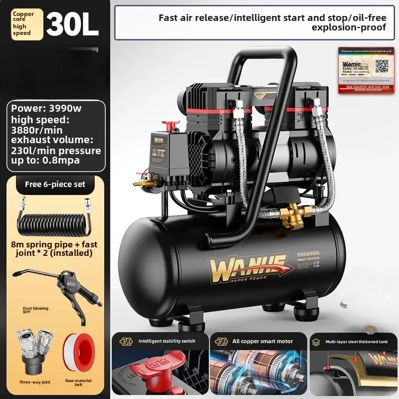 220V Portable Industrial Grade Woodworking Silent High Pressure Air Compressor Pump Air Compressors