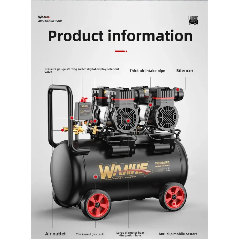 220V Portable Industrial Grade Woodworking Silent High Pressure Air Compressor Pump Air Compressors