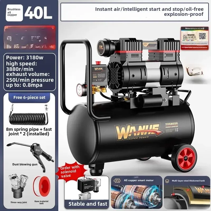 220V Portable Industrial Grade Woodworking Silent High Pressure Air Compressor Pump Air Compressors