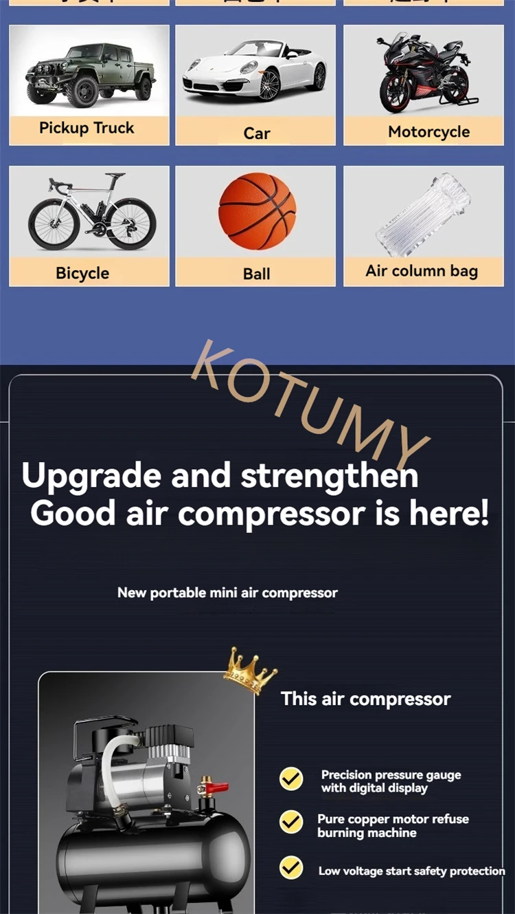220V Portable Small Air Compressor Air Compressor Car Air Pump Tire Inflator Electric Motorcycle Pump