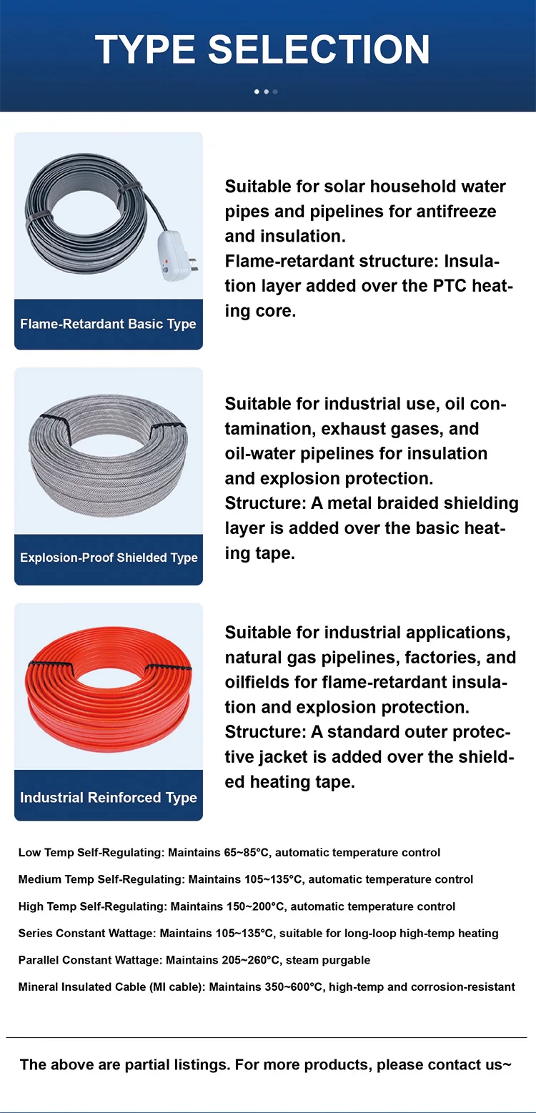 Due to page limitations, some cable length options are not fully listed. Cable lengths can be customized as needed—please contact us for special requirements.Heating Cable Parameters