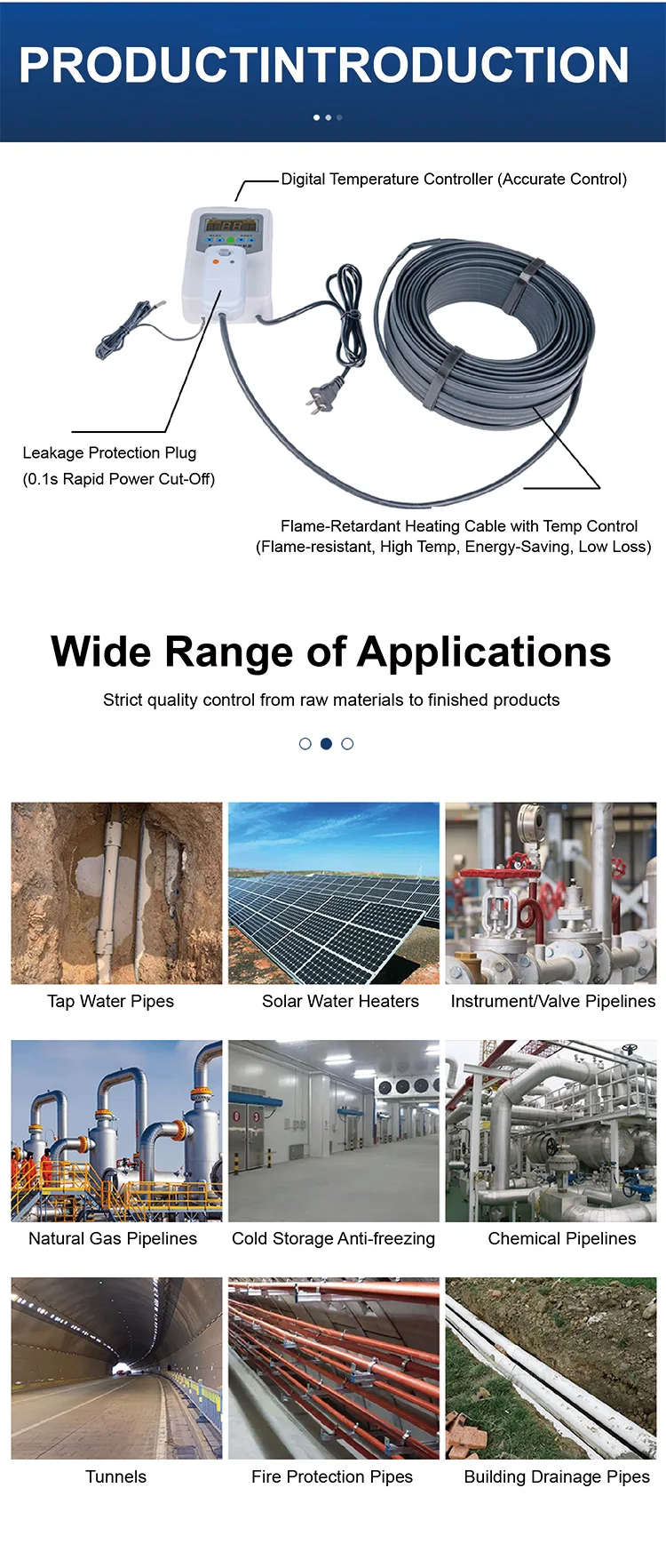 Suitable for water supply pipes, solar water heaters, instrumentation, valves, gas pipelines, cold storage, chemical pipelines, tunnels, fire protection lines, and drainage systems.