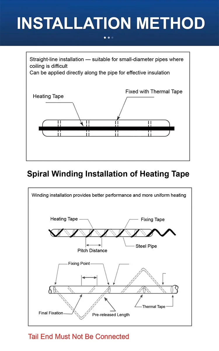A3: Installation is straightforward. You can install it in straight or spiral layout. Ensure proper contact with pipe surfaces and follow the insulation and sealing instructions to avoid damage or short-circuiting.