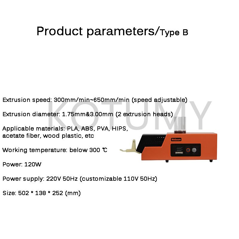 Extrusion diameter: 1.75mm&3.00mm (2 extrusion heads)