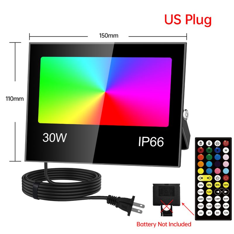 220V/110V RGB LED Flood Light 30W 50W 80W IP66 Waterproof Outdoor Projector Spotlight with Remote Dimmable & EU US AU UK Plug