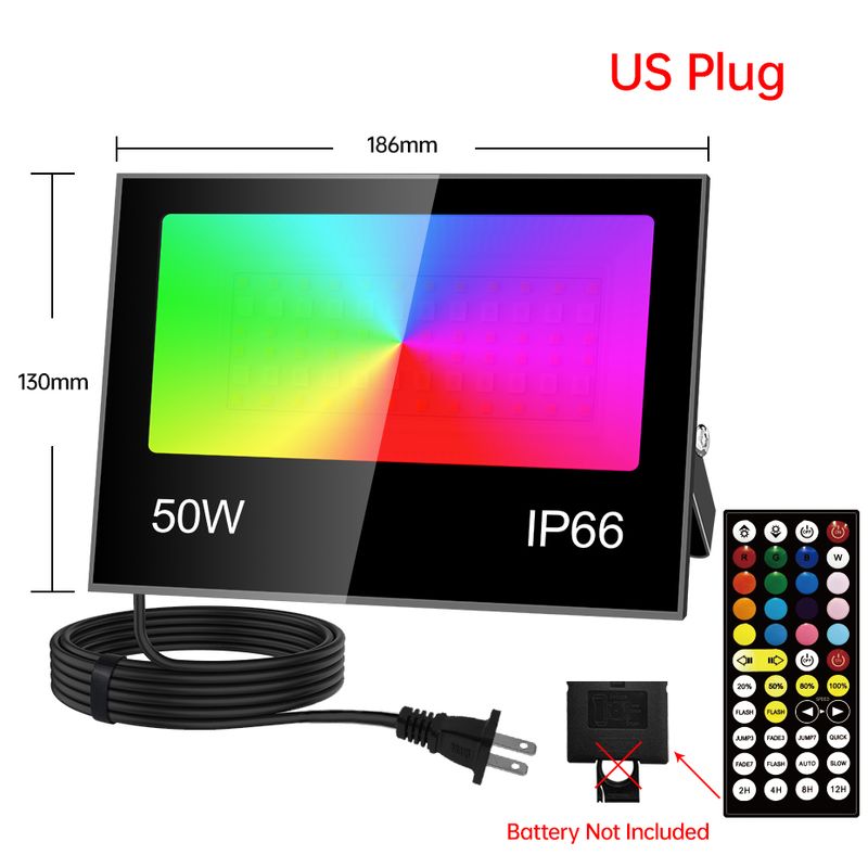 220V/110V RGB LED Flood Light 30W 50W 80W IP66 Waterproof Outdoor Projector Spotlight with Remote Dimmable & EU US AU UK Plug