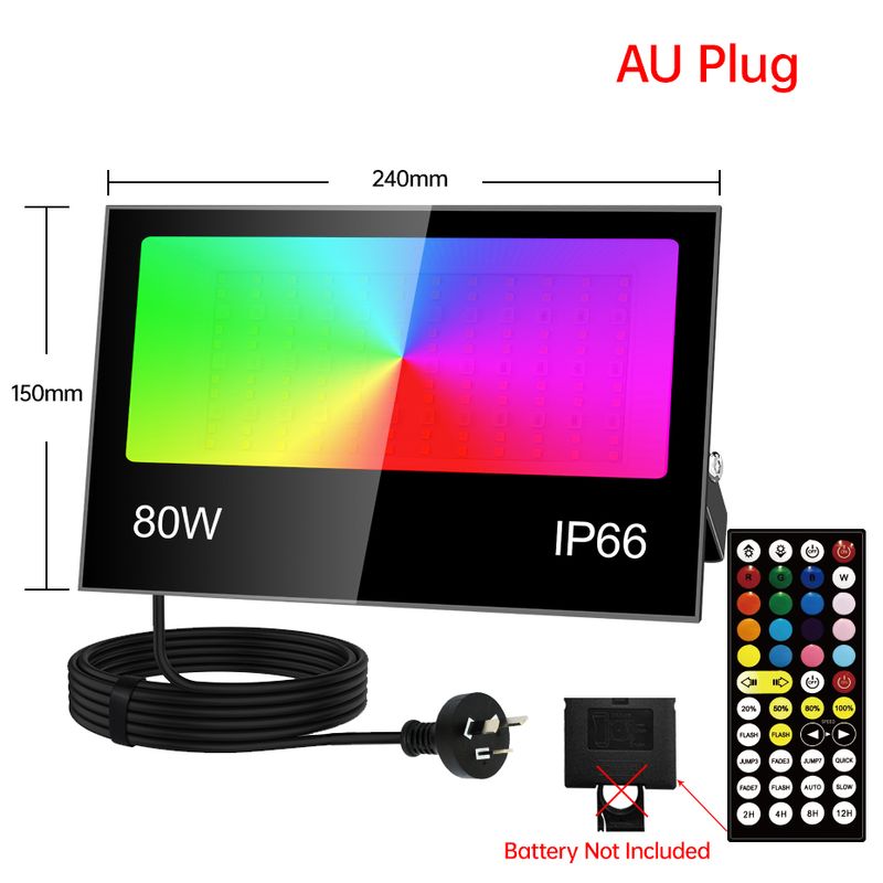 220V/110V RGB LED Flood Light 30W 50W 80W IP66 Waterproof Outdoor Projector Spotlight with Remote Dimmable & EU US AU UK Plug