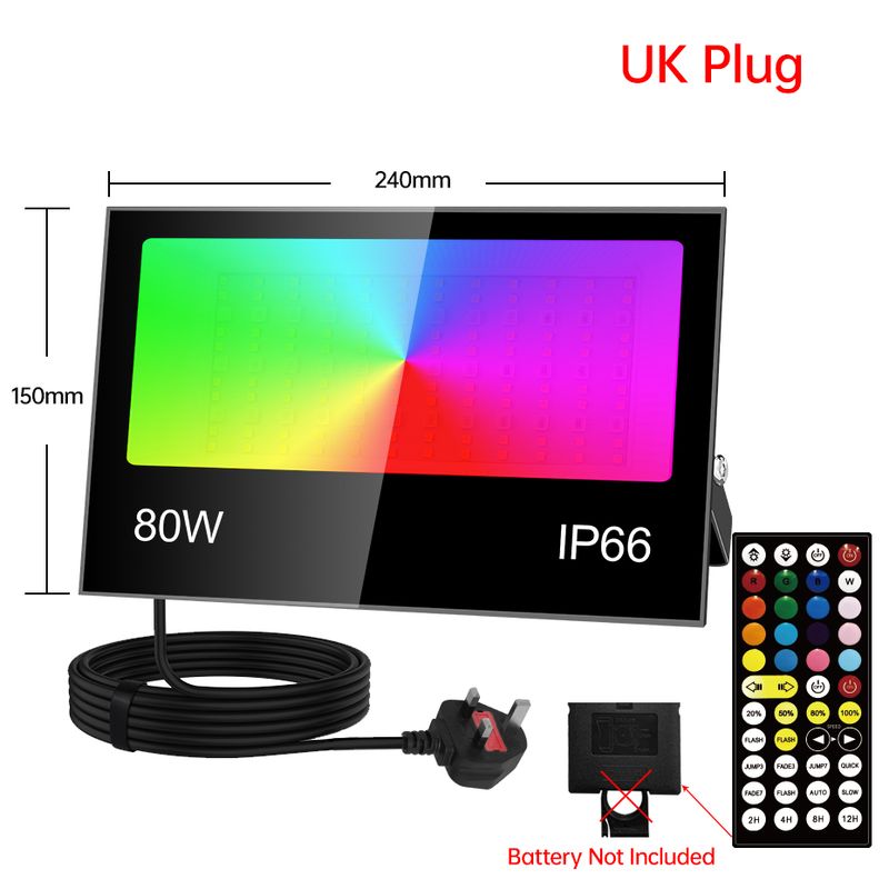 220V/110V RGB LED Flood Light 30W 50W 80W IP66 Waterproof Outdoor Projector Spotlight with Remote Dimmable & EU US AU UK Plug