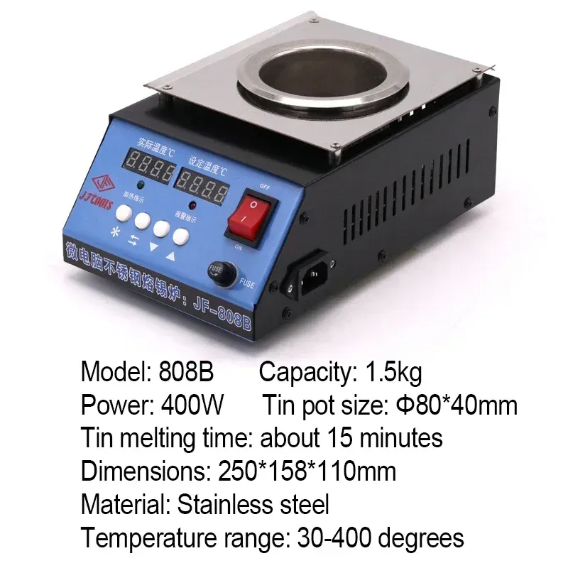 220V/110V Tin Melting Pot Solder Pot Tin Melting Furnace Thermoregulation Soldering Desoldering Bath 30~400 Degree Ajustable