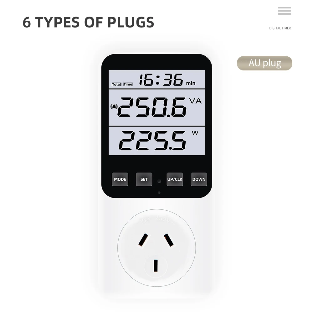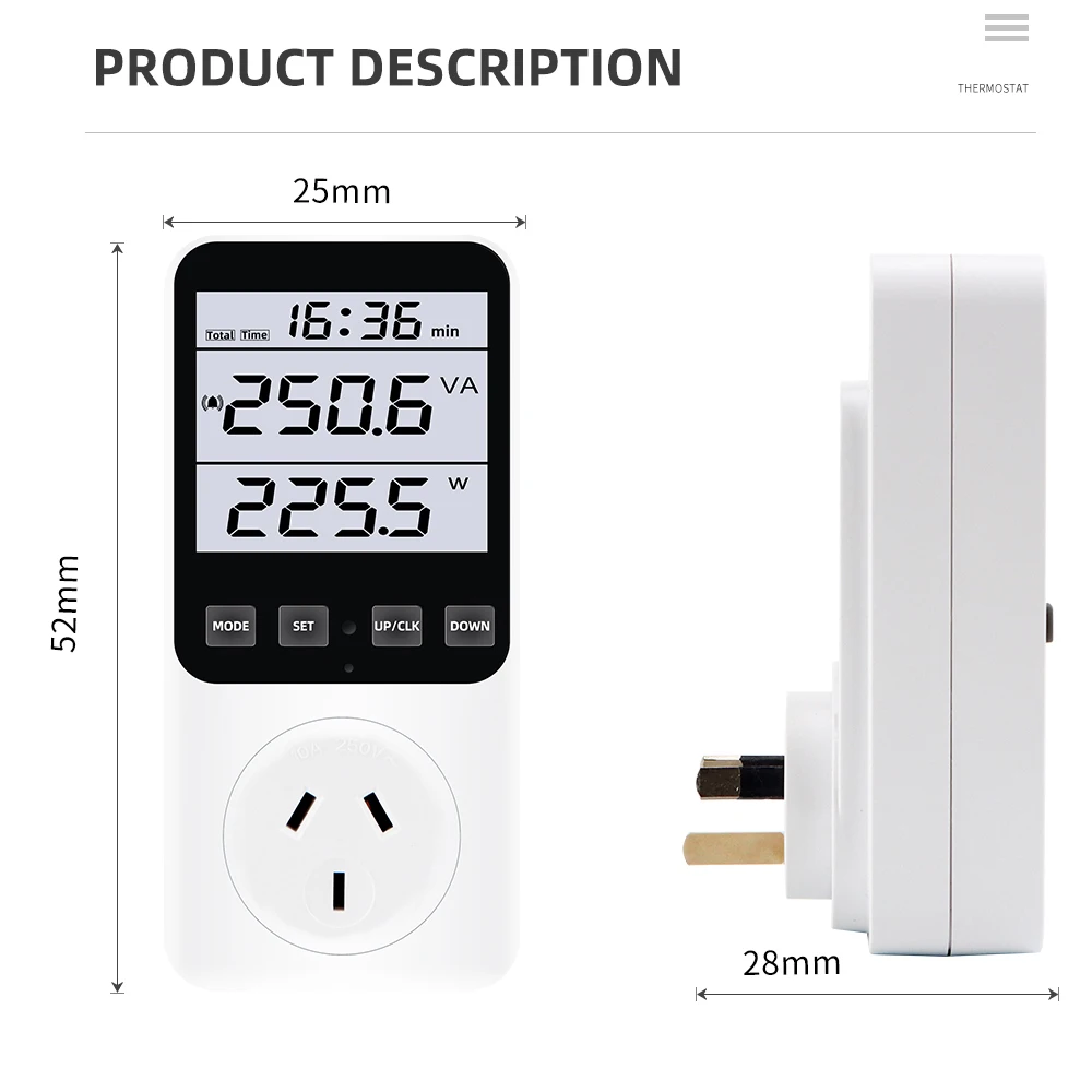 4. Full-featured: power, maximum/minimum power, voltage, current, electricity cost, power consumption, accumulated time, overload alarm, power consumption alarm, pulse indication, etc.