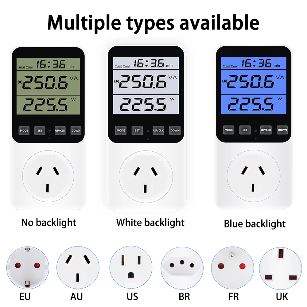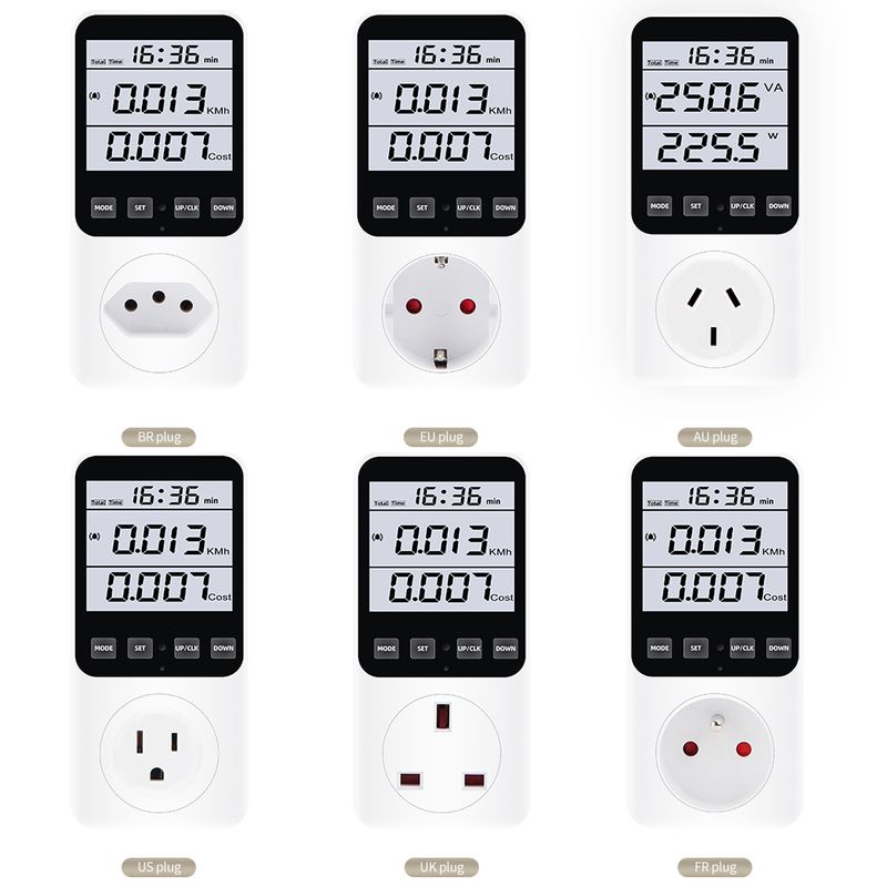 220V/120V AC Digital Power Meter Wattmeter Socket Wattage Kwh Test Energy Meter Electric Consumption Analyzer EU FR US UK AU BR