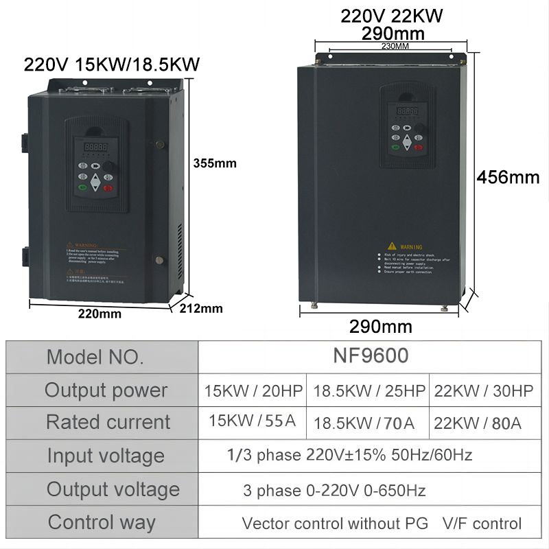 220V1.5KW 2.2KW 4KWSingle Phase input and 3 Phase Output Frequency Converter / Adjustable Speed Drive / Frequency Inverter / VFD