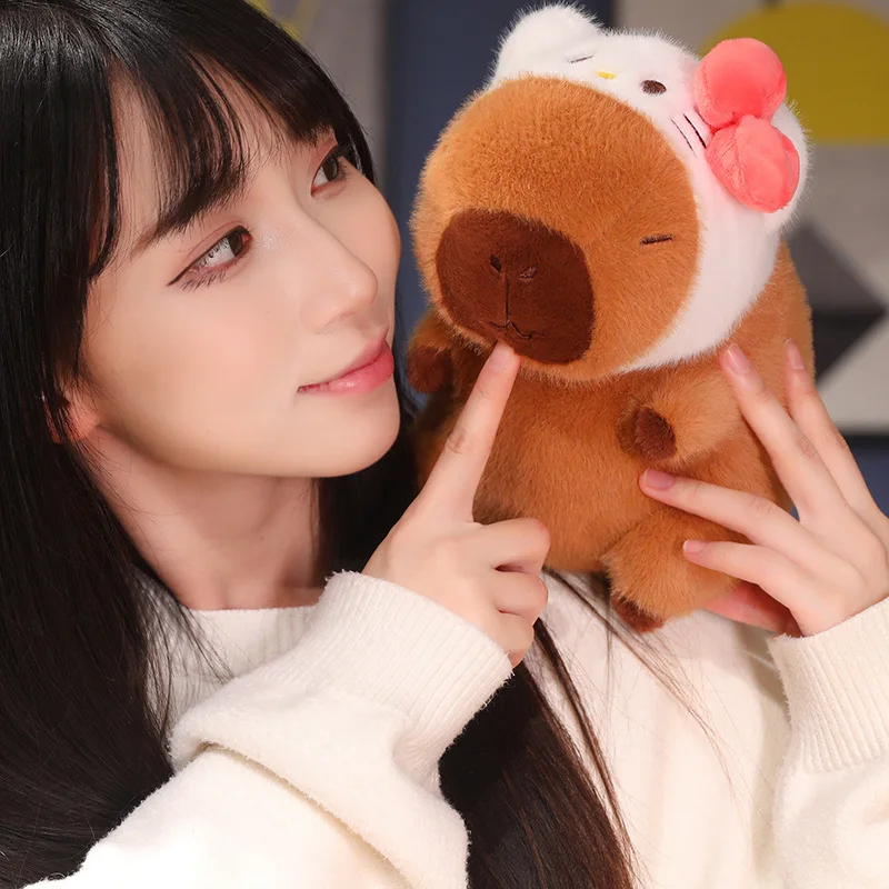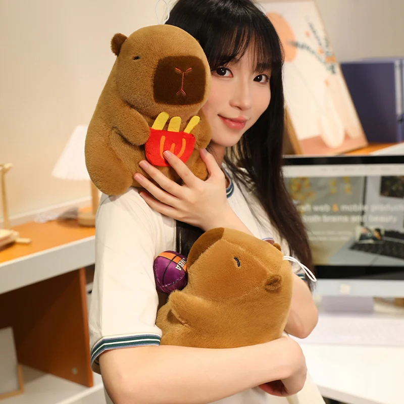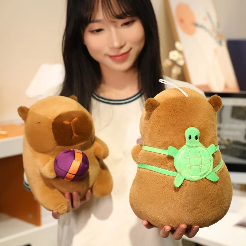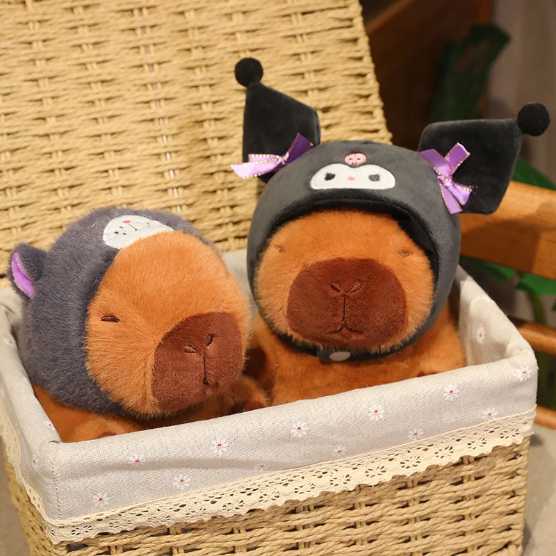 22cm Cartoon Pikachu Kuromi Hat Capybara Plush Toy Capibara Stuffed Animal Soft Capybara With Basketball Plushies Doll