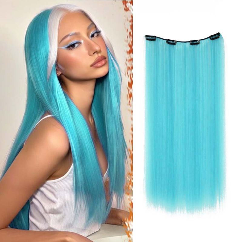 22inch Long Straight colorful Synthetic Hair Extensions - Invisible Clip-In, High Temperature Resistant, Easy to Wear for Women