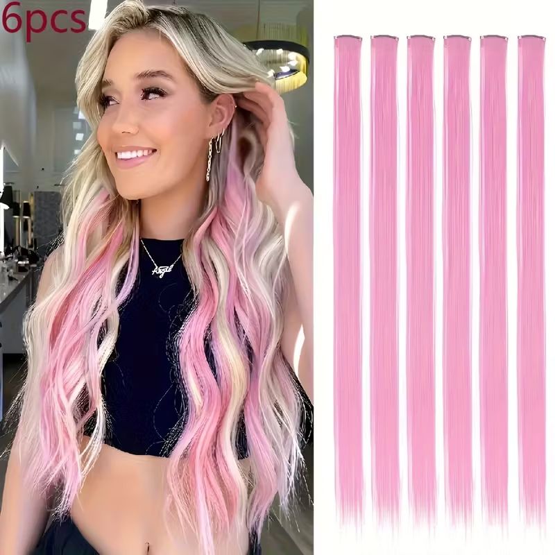 22Inch Synthetic Long Straight 6pcs Hair Extension Clip in Fashion Color Hair Rainbow for Women Daily Use