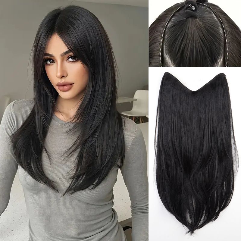 22Inch Synthetic Long Straight Layered V-Shaped Clip-in Hair Extension 4 Clip Heat Resistant Hairpiece for Women