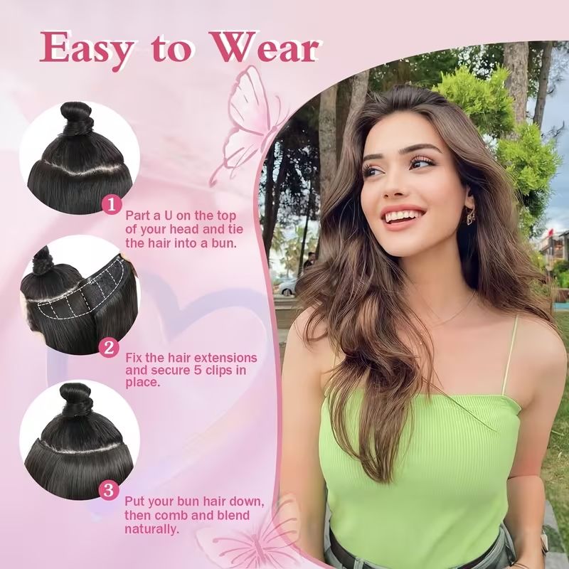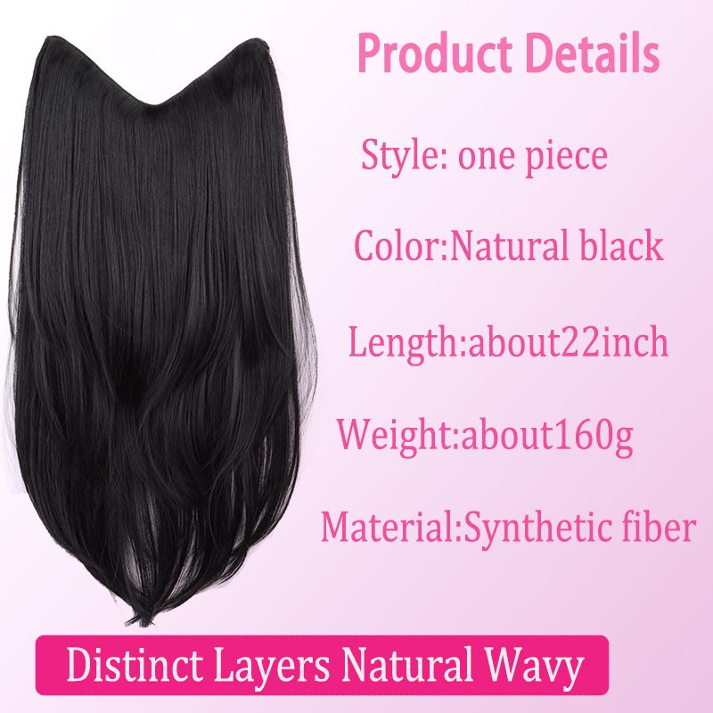 22Inch Synthetic Long Straight Layered V-Shaped Clip-in Hair Extension 4 Clip Heat Resistant Hairpiece for Women