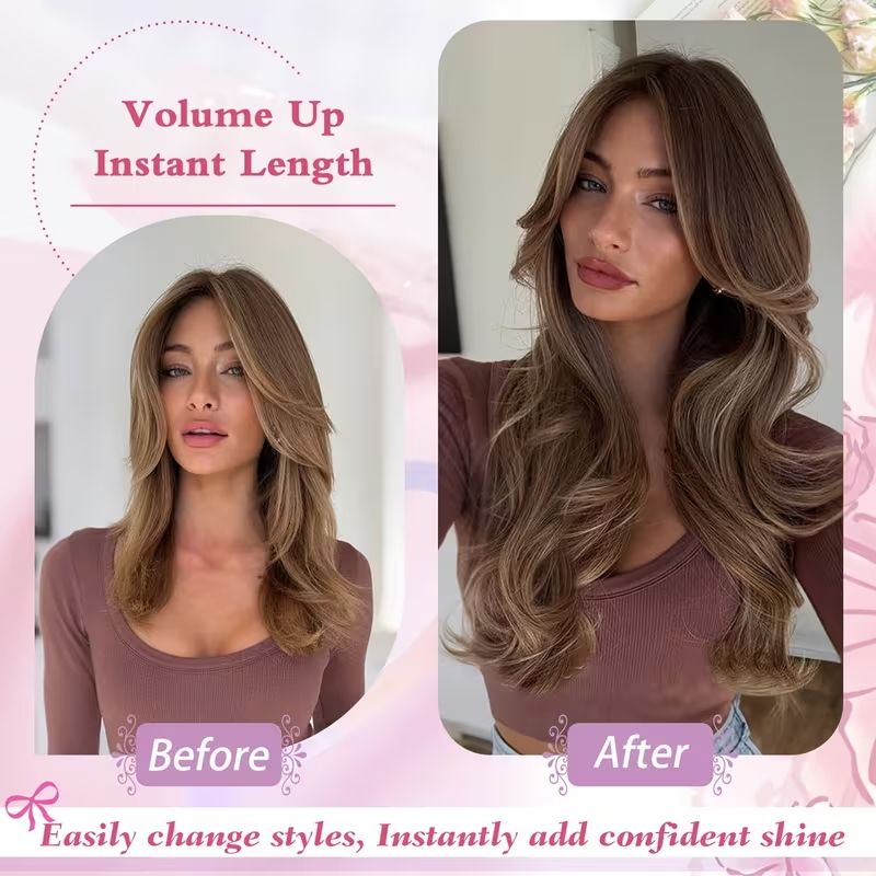 22Inch Synthetic Long Straight Layered V-Shaped Clip-in Hair Extension 4 Clip Heat Resistant Hairpiece for Women