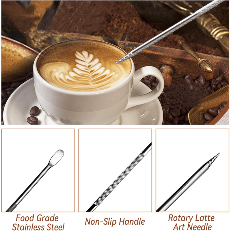 [Complete 22-Piece Barista Set] This professional espresso accessories set includes a 51mm coffee tamper, WDT tool, coffee tamper pad, 350ml milk frothing jug, 16 decorative templates, a latte art pen, and a coffee stirring spoon. Perfect for making beautiful coffee art and elevating your coffee experience.