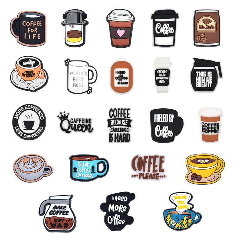 22pcs PVC Shoe Charms for Crocs Accessories Coffee Drink Badge Women Sandals Buckle Kids Pins Men Decoration Jeans X-mas Gifts