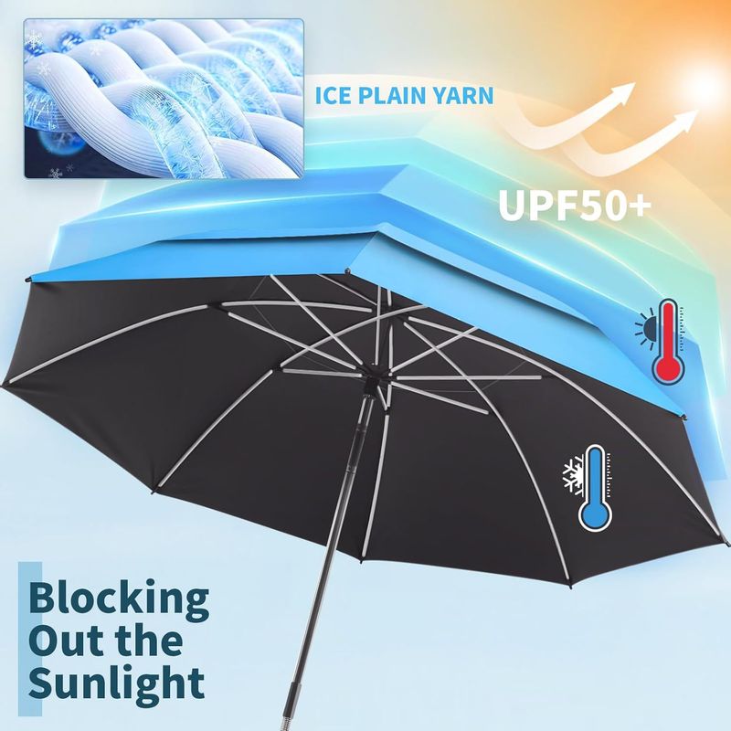 23-Inch Breathable Double-layer Beach Chair Parasol with Fixture 360 ° Adjustable Convenient Beach Umbrella