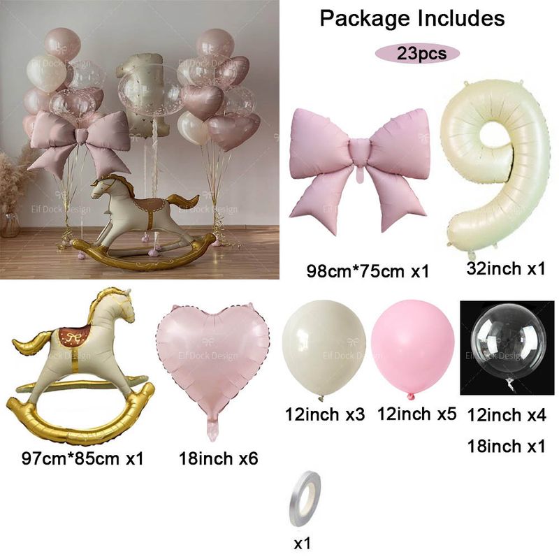 23pcs Large Pink Bow Balloons Love Heart Trojan Horse Balloon for Birthday Wedding Decor Pink Themed Anniversary Party Supplies