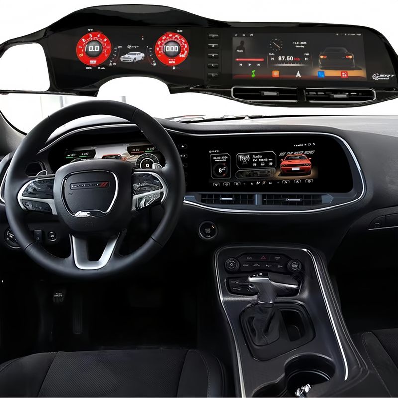 24.6" Dual Screen For Dodge Challenger SRT Hellcat 2010-2023 Car Stereo GPS Navigation Auto Radio Carplay LCD and Digital Cluste