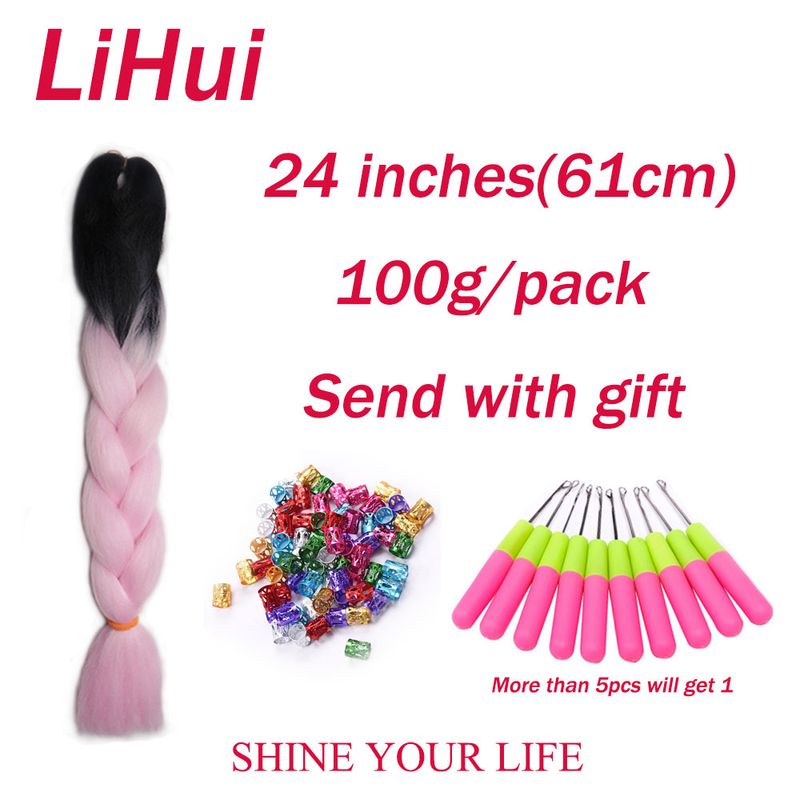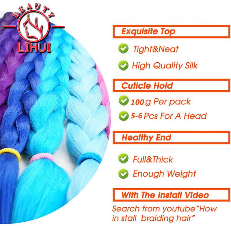 24 Inches Synthetic Braiding Hair Jumbo BraidOmbre Jumbo Hair Extension For Women DIY Hair Braids Purple Pink Yellow Gray Lihu