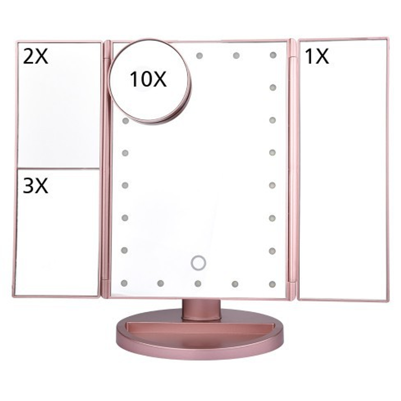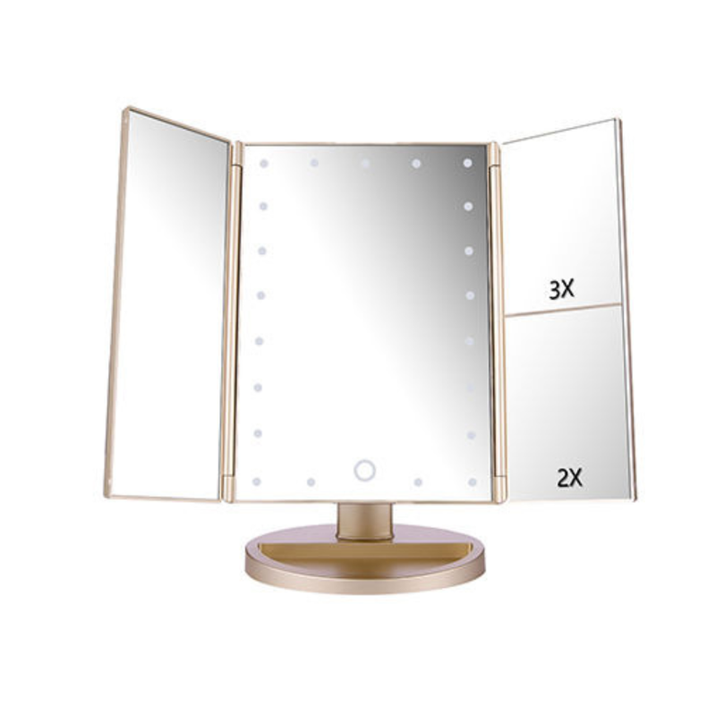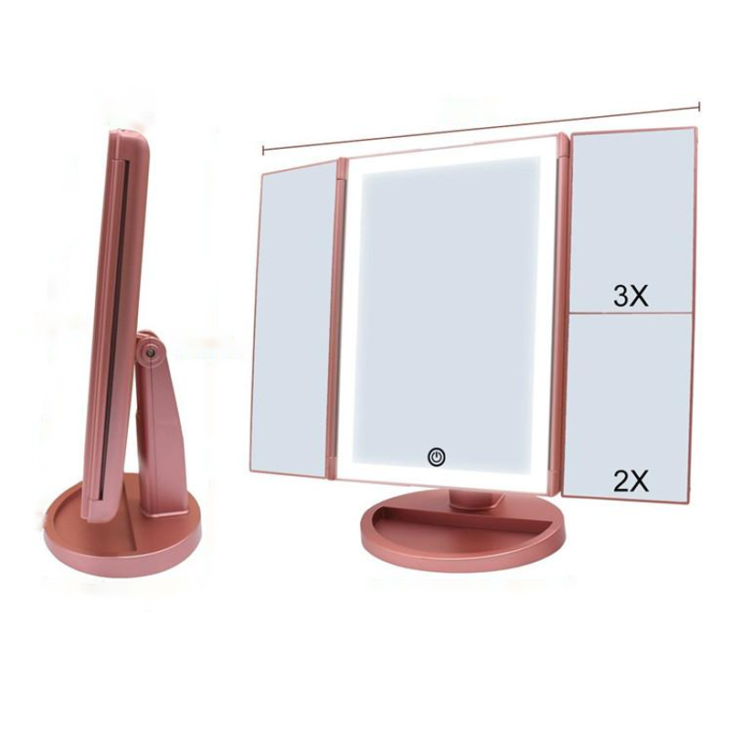 24 LED Magnifying Lighted Cosmetic Makeup Mirror Tabletop Tri-fold Touch Screen Mirror Touch Screen 22lights makeup mirror White