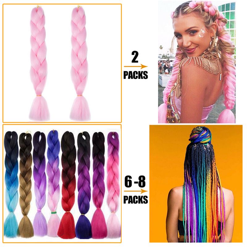 24" Synthetic Yaki Braids Hair kanekalon Ombre Braiding Hair Jumbo Braid Hair Extension For Women Hundreds of colors DIY Hair