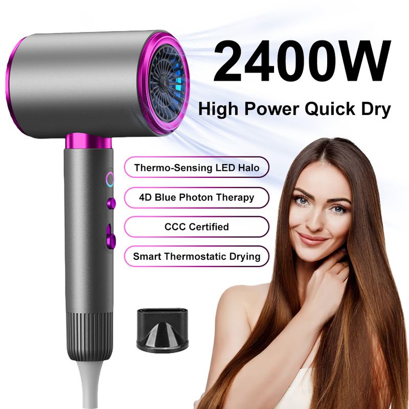 2400W High-Speed Hair Dryer Professional with Nozzle Settings Quick Blow Dry Ionic Care Low Noise for Frizz Control Shiny Hair