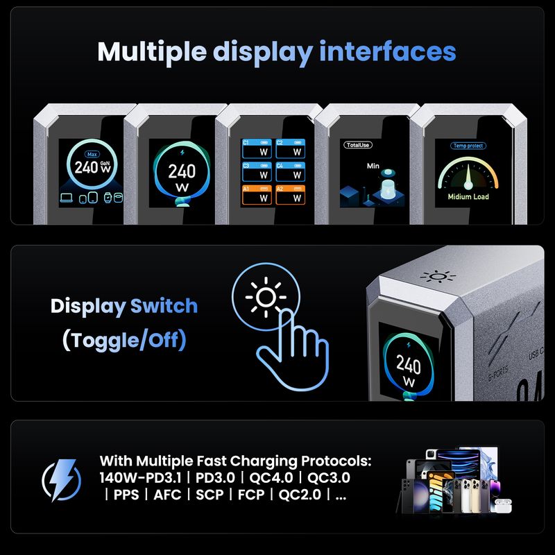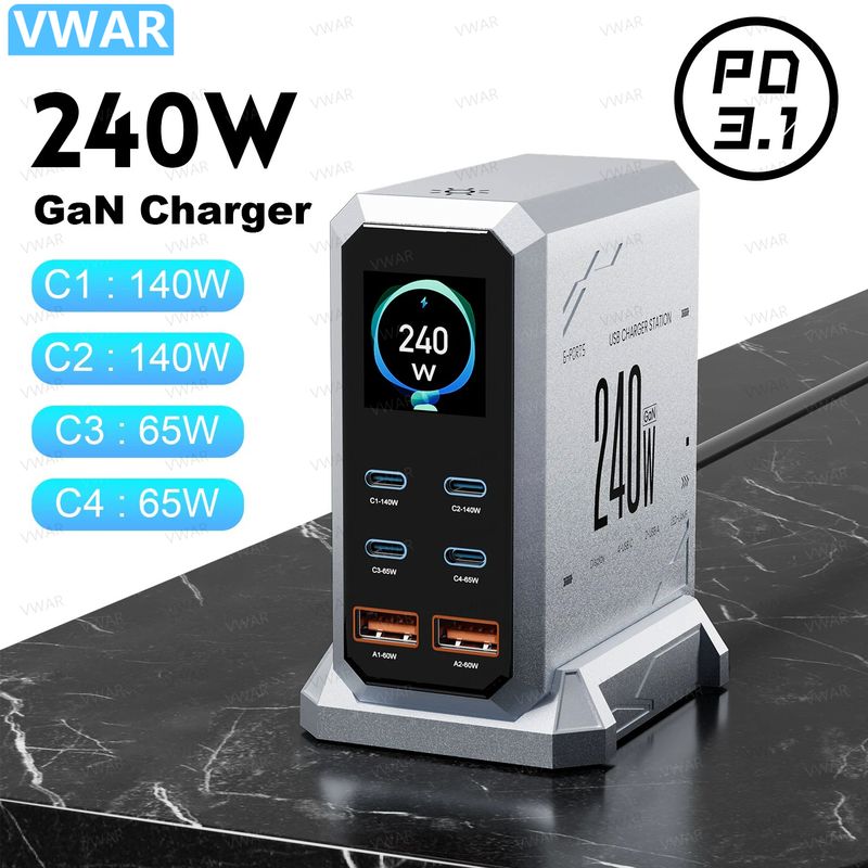 4 USB C | 2 USB A | 140W-PD3.1 I Ambient Lighting I Lighting Switch