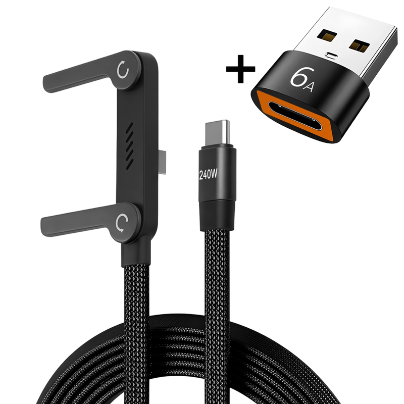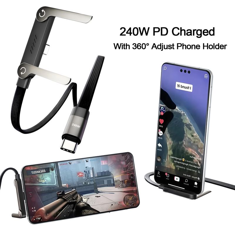 240W PD 2-in-1 Fast Charging Cable with Foldable Phone Holder Stand for iPhone Samsung Xiaomi Tablet Laptop Charger Cord+USB OTG