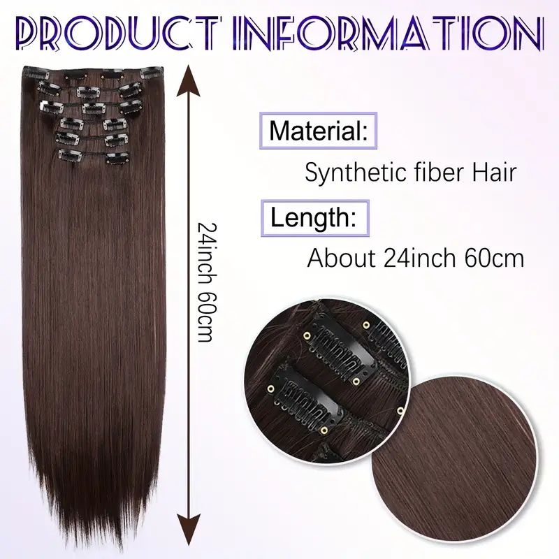 24Inch Synthetic 6pcs/set Long Straight Clip-in Hair Extension Heat Resistant Fiber Hair for Women Hair Accessories