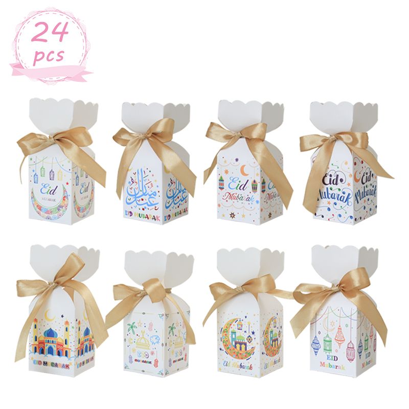 24PCS Eid Mubarak Boxes, Ramadan Mubarak Gift Boxes Small Goodie Present Boxes Muslim Candy Treat Boxes for Ramadan Festival