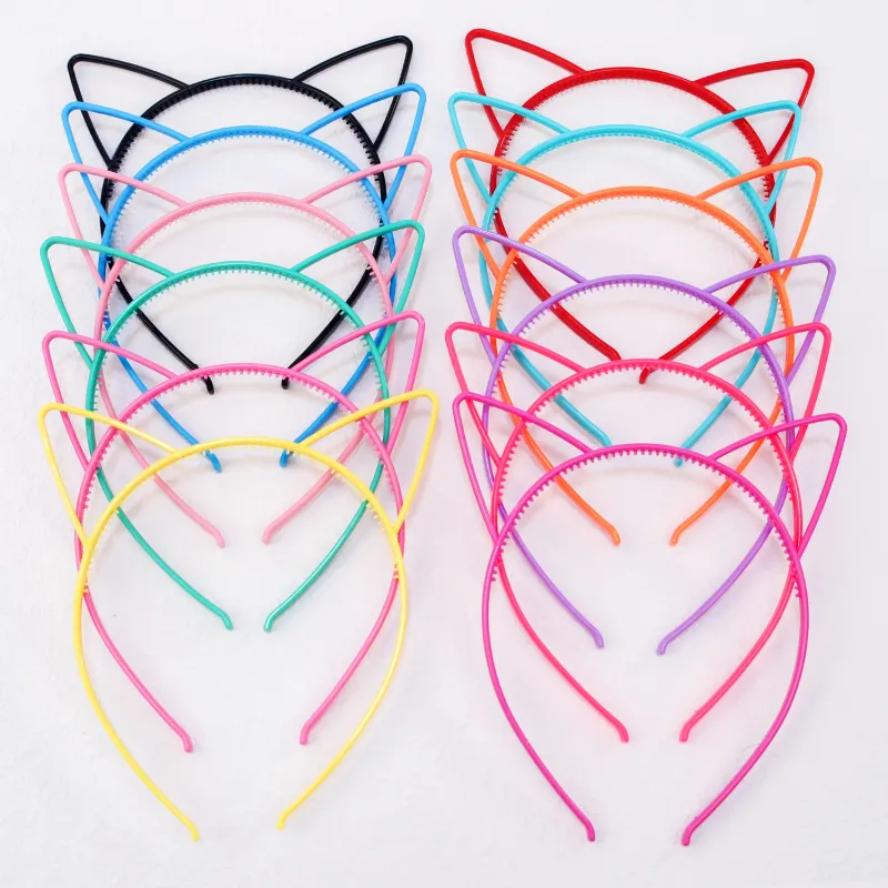 24PCS Girls Cat Ear Headbands Candy Color Cat Ears Headband Plastic Teeth Hairbands Family Decoration Party Hair Accessories
