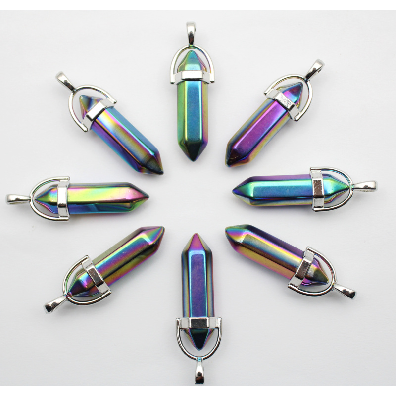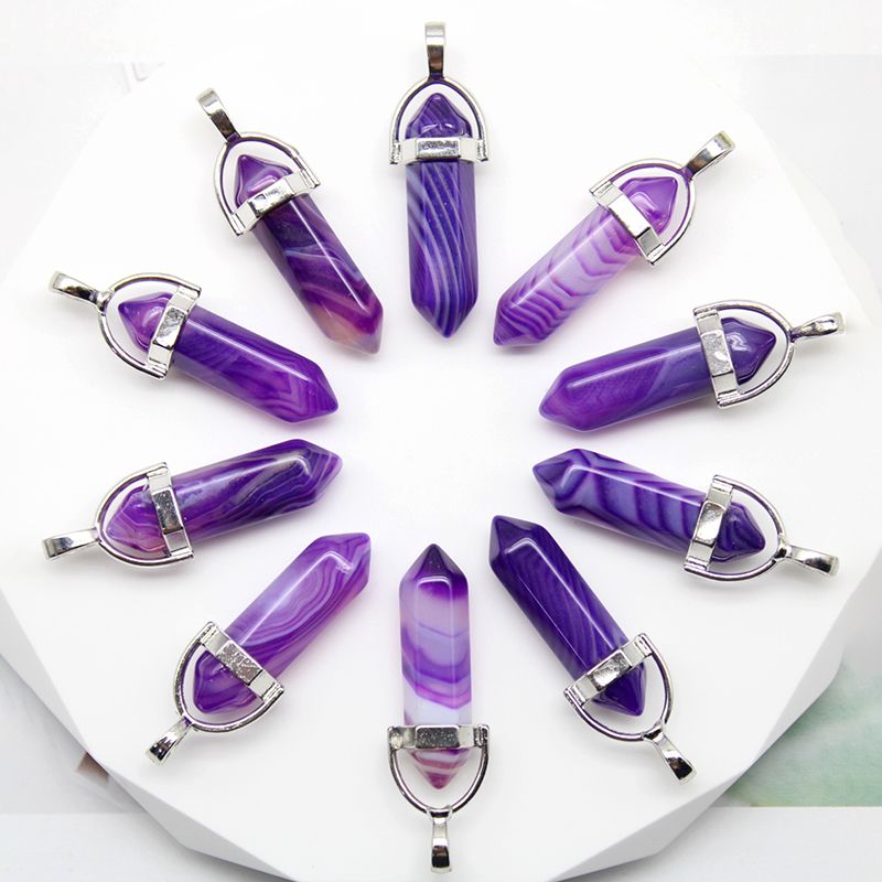 24pcs Natural Stone Agates Quartz Crystal Pendants For Necklace Charm Fluorite Hexagonal Pendant DIY Jewelry Making Accessories