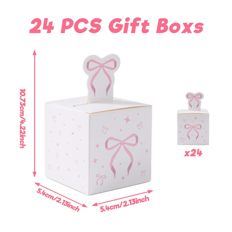 24Pcs Sweet Pink Bow Candy Boxes Gift Packing Bag Cake Snack Bags Kids Girls Birthday Baby Shower Supplies Wedding Party Decor