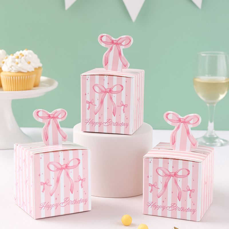 24Pcs Sweet Pink Bow Candy Boxes Gift Packing Bag Cake Snack Bags Kids Girls Birthday Baby Shower Supplies Wedding Party Decor
