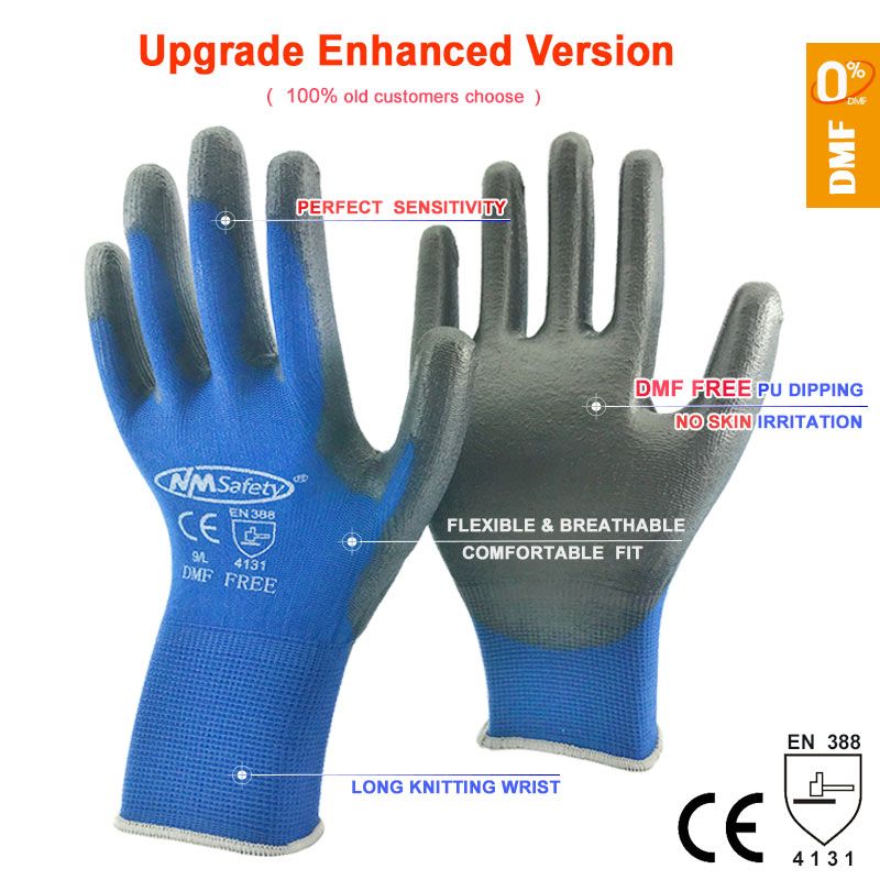 1. Des: 13 gauge knitted nylon or polyester liner dipping PU on palm glove. Here are many types for choose!