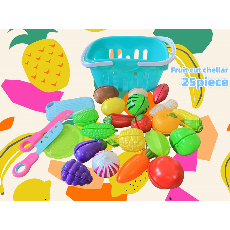 25 PCs Set DIY Fruit Cutting Music Toy Simulation Vegetable Fruit and Vegetable Children's Toy Girl Boy Kitchen Food Set