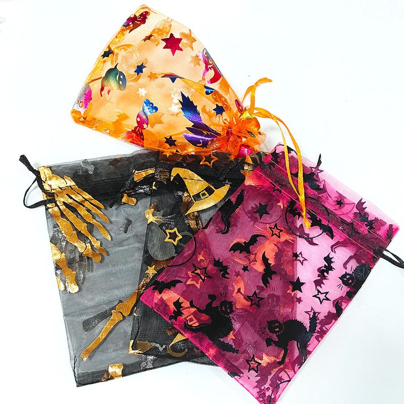 25/50/100pcs Halloween Organza Gift Bag Drawstring Spider Web Multi Color Printing Packaging Gift High Quality Candy Bag