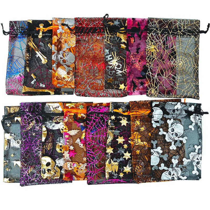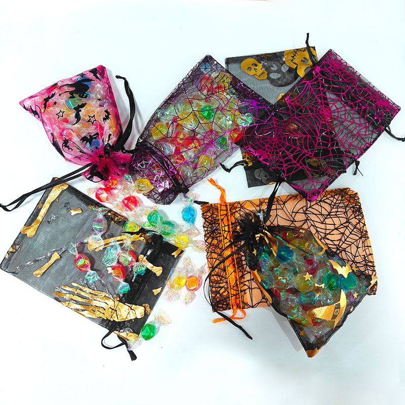 25/50/100pcs Halloween Organza Gift Bag Drawstring Spider Web Multi Color Printing Packaging Gift High Quality Candy Bag