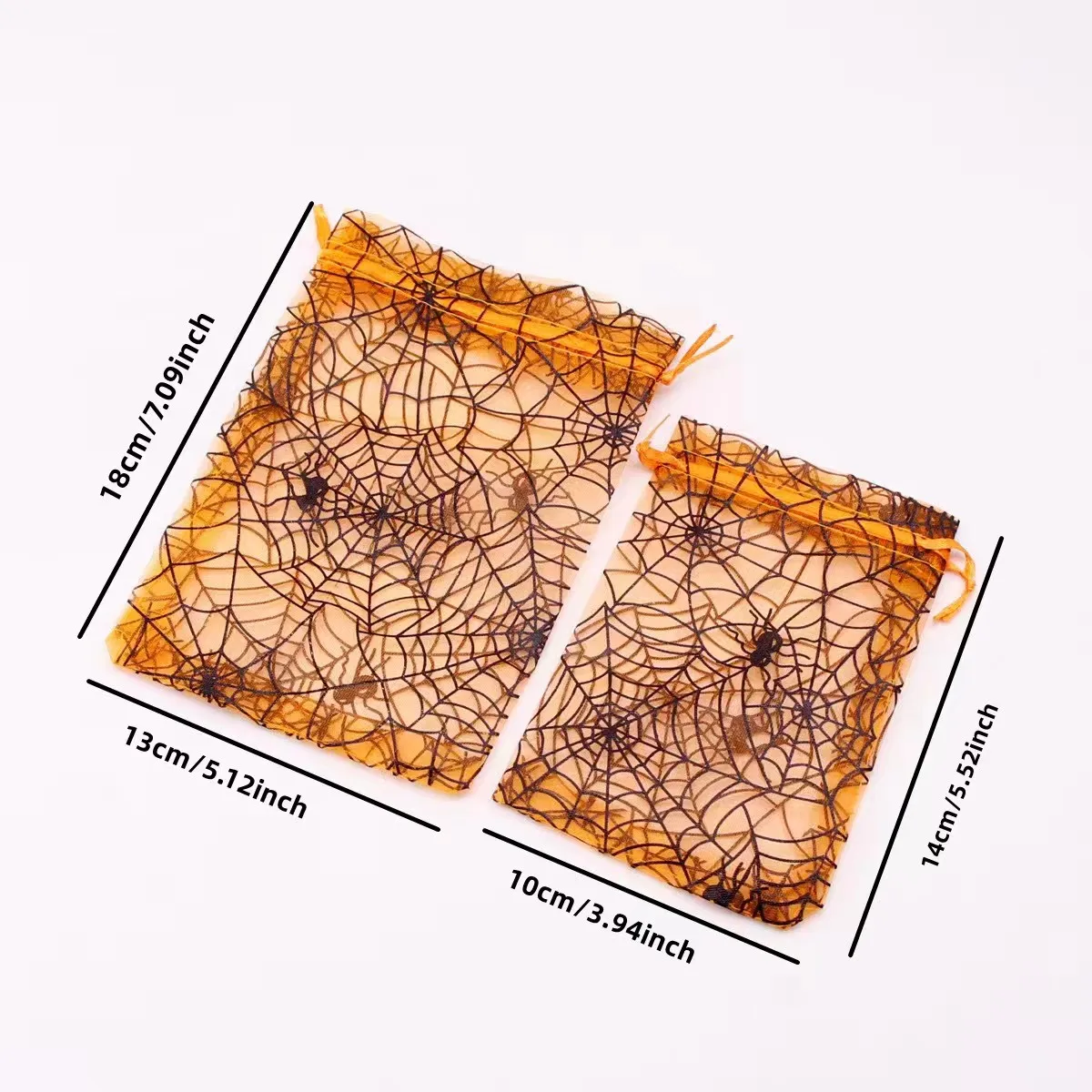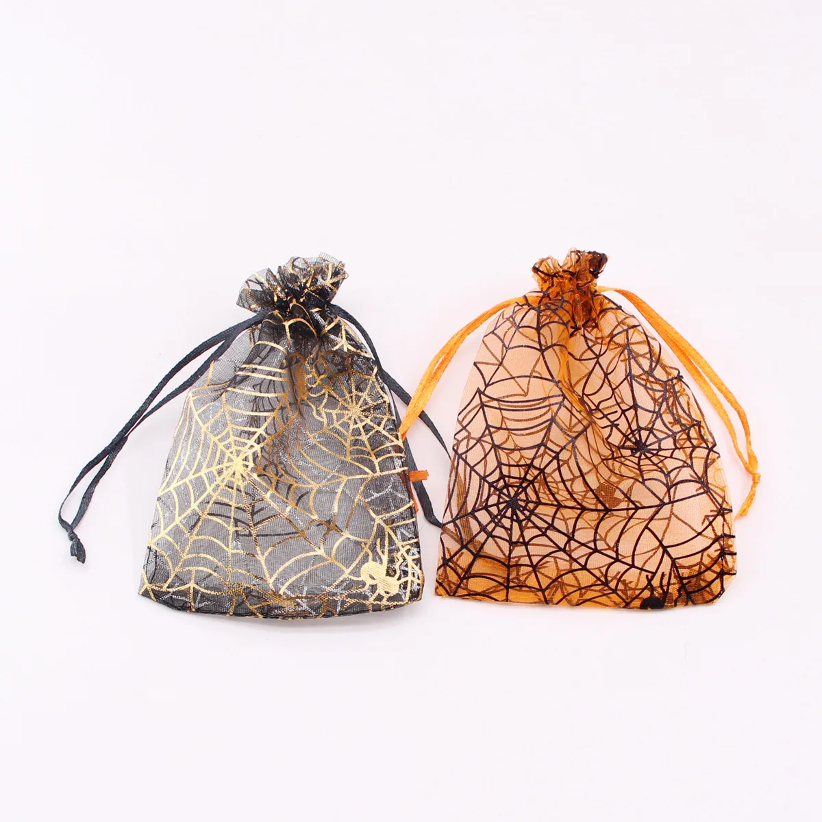25/50/100pcs Halloween Organza Gift Bag Drawstring Spider Web Multi Color Printing Packaging Gift High Quality Candy Bag