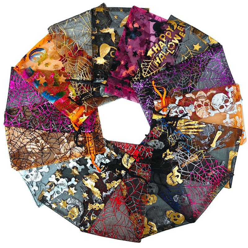 25/50/100pcs Colorful Halloween Organza Gift Bags Skull Spider Web Printing Packaging Gift High Quality Drawstring Candy Bag