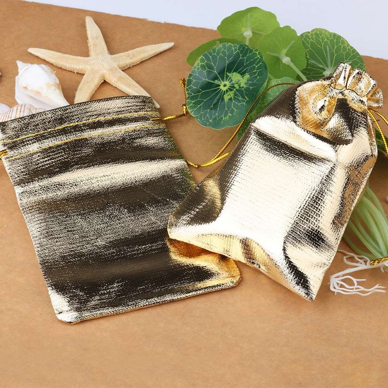 25/50pcs 7x9/9x12/10x15cm Fabric Packing Gift Bags Gold Color Jewelry Packaging Bag Wedding Party Present Drawstring Pouch