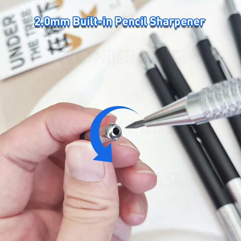 3. Built in pencil sharpener: The top button of the 2.0mm pen body is equipped with a pencil sharpener, which can be used to sharpen the 2.0mm pen core.