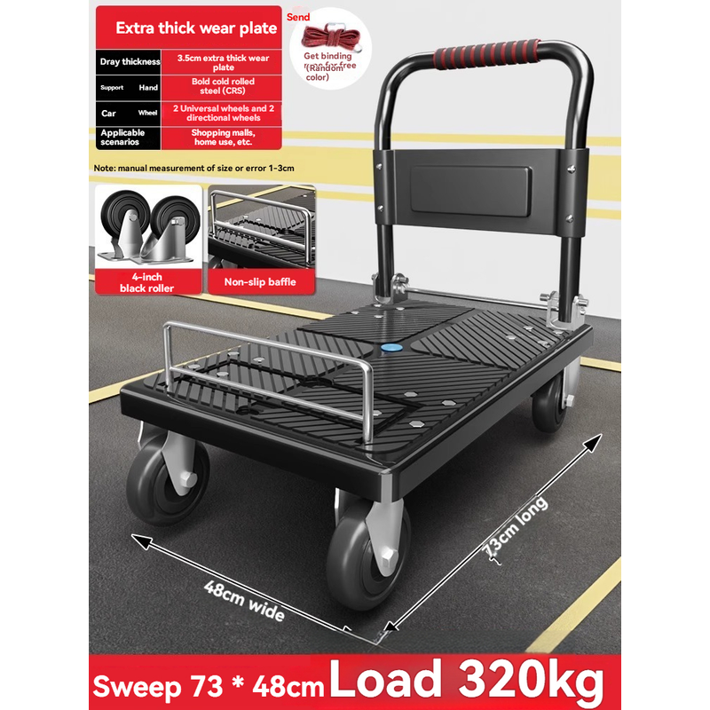 250kg New 73X48cm Trolley Cargo Trailer Folding Lightweight Hand-held Trolley Transport Flatbed Home Delivery Trolley