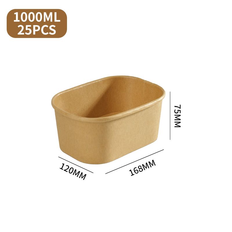 25pcs Disposable Brown Rectangle Kraft Paper Bowl With Lid Lunch Box Party Supplies Takeout Salad Bowl Food Packaging Container